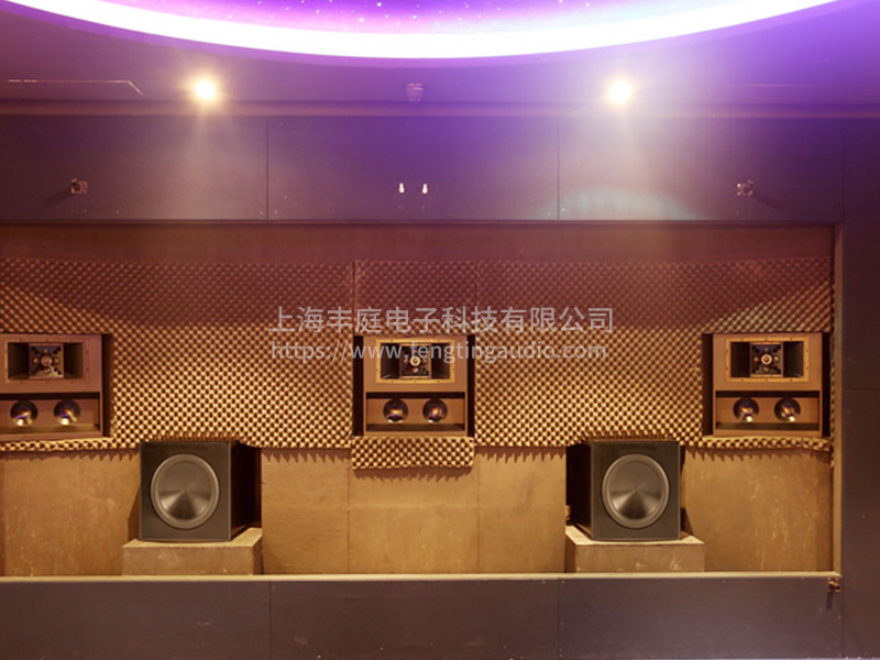我們把幕布拿下來就能到整個音頻系統(tǒng),整套音頻系統(tǒng)采用全景聲7.4.4全景聲設計,考慮到前后排的聲壓覆蓋,影院前三采用的是james系列mq84,矩陣高音是一大特色,既保證高頻透過幕布的后的聲壓級,又讓聲音不刺耳耐聽,為了充分抵消駐波,前墻兩只低音炮按照模擬位置拜訪,炮位根據(jù)實際數(shù)據(jù)分析,將后座抬高到0.8米,充分抵消長度方向的二次駐波,同時,后墻配合兩只密閉炮將整個低頻聲場分布的更加平衡。