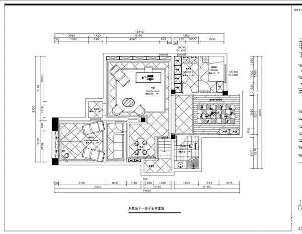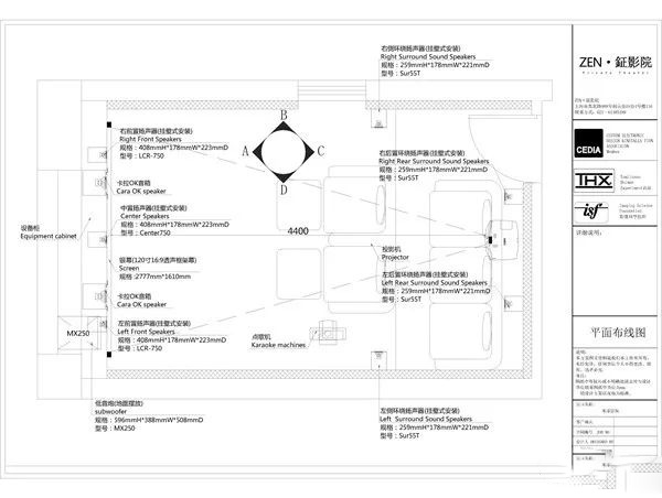 黃先生功能上考慮家庭影院與卡拉OK系統(tǒng),影院必須滿足THX認證要求,平面圖紙如下。