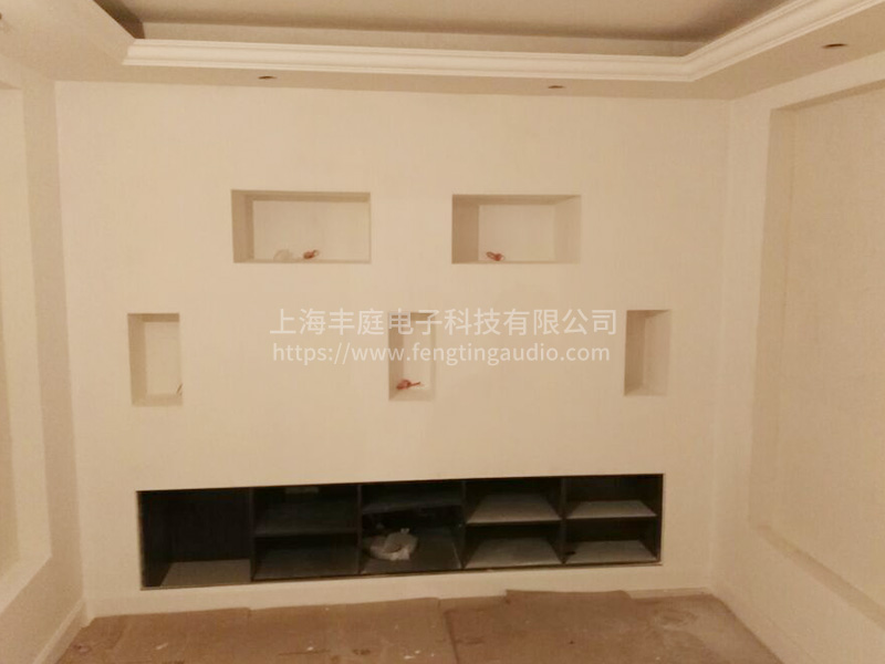 規(guī)劃思路:影院與卡拉OK兩套系統(tǒng),影音室寬度:3.2M 長度:5.3M ,空間不大,為了滿足前墻空間更合理利用,系統(tǒng)均嵌入式設計;由于后續(xù)要考慮游戲互動功能(設備柜后置,還需要布一個USB的線到幕布前面,線太長會有延時),還要滿足觀影人數(shù)要求,設備柜取消后面放置,直接前面嵌入式放置;環(huán)境聲學按照嚴格測試要求,嵌入式設計.