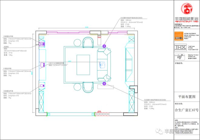 整個(gè)空間近40平,實(shí)際觀影區(qū)在30平,為了讓空間盡可能的美觀和協(xié)調(diào),我們做了一套外置加隱藏結(jié)合的影音系統(tǒng),整體音頻按照5.1聲道來設(shè)計(jì)。
