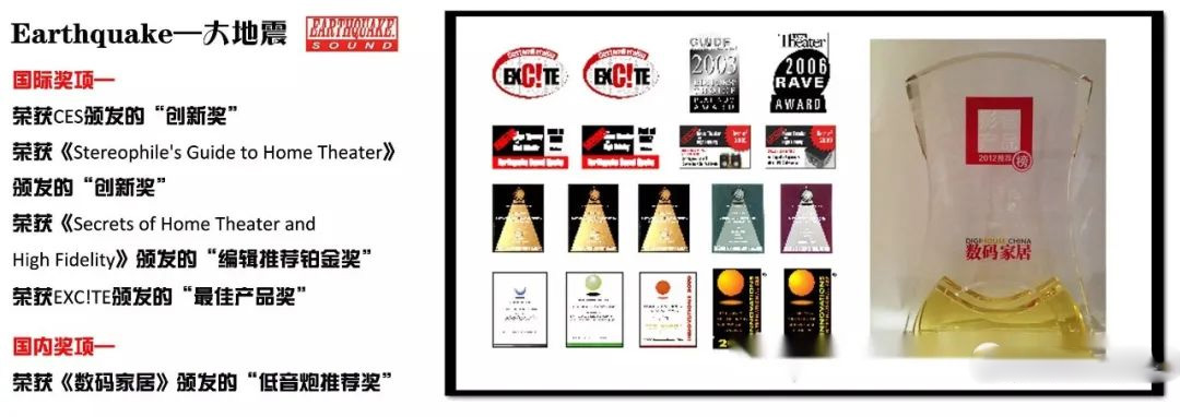 揚(yáng)聲器選擇的是美國Earthquake大地震,到現(xiàn)在擁有近40年的歷史了,總部在美國加利福尼亞州,目前是CEDIA、SEMA、CEA核心成員單位,在業(yè)內(nèi)獲獎無數(shù)。