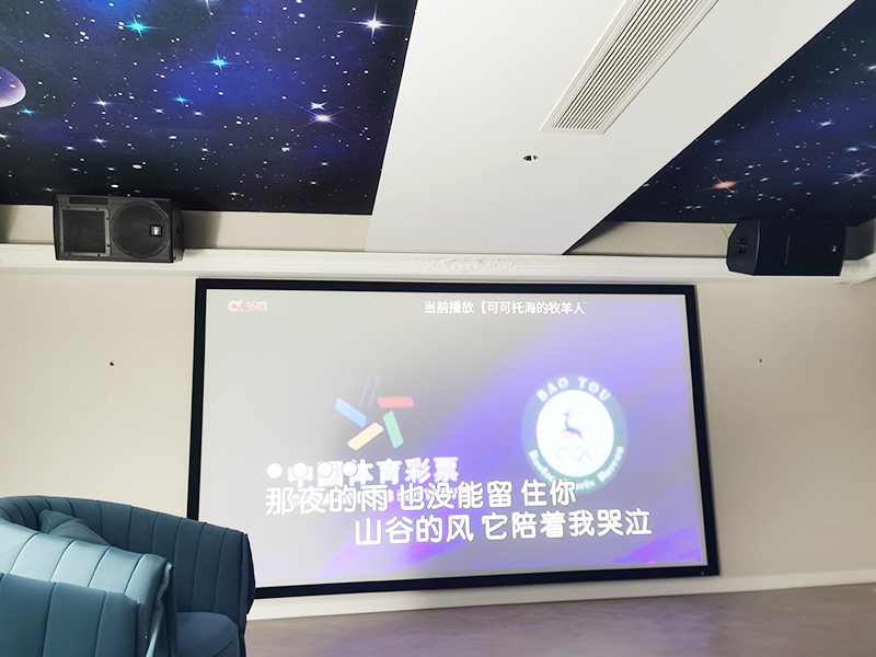 為了追求簡潔性,影院的音箱均為嵌入式安裝,前三主音箱安裝在幕布后方,這樣看電影時聲畫同步更逼真,看電影的臨場感也更強。