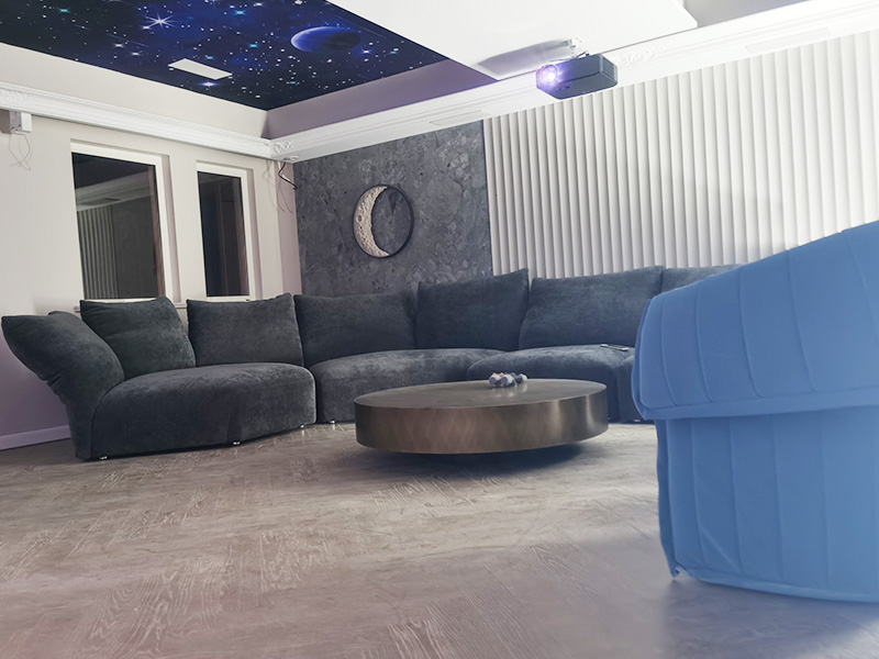 業(yè)主要有三個小孩,為了不讓小朋友看電視影響眼睛,還特意考慮了一套家庭影院系統(tǒng),由于影音室有一面墻都是窗戶,為了不影響正常觀影,投影機采用JVC N69這是一款4K激光光源的機器,亮度更高,色彩還原更真實。