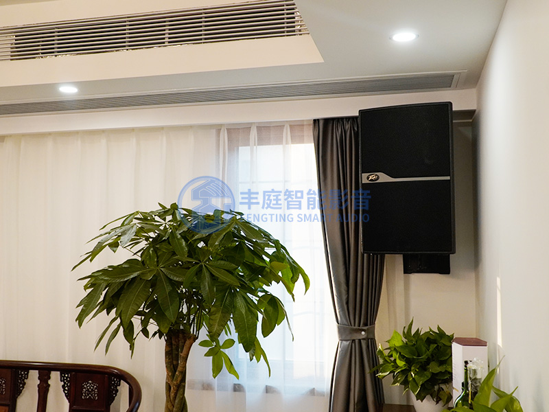 整個空間20平左右,為了達到聲場的均勻擴散,我們采用了4個12寸專業(yè)箱設(shè)計,配合專業(yè)的數(shù)字效果器,多種模式解決了很多人唱歌高音唱不上去,中頻不飽滿的情況,爆發(fā)力十足,整體空間感,聲場都很均勻。也考慮到會客廳聲音比較嘈雜,唱歌者不會被外界打擾。