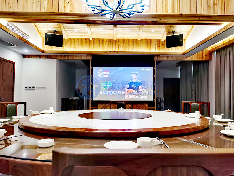 由于這個房間內(nèi)要考慮到擺放一個大的餐桌,所以不需要沙發(fā)之內(nèi)的家具,整體看上去就是一個餐飲的包房,大家可以一邊喝酒一邊娛樂,看到客戶能夠把酒言歡的同時,對于我們這套系統(tǒng)的滿意,我們團隊的心情也是高興的