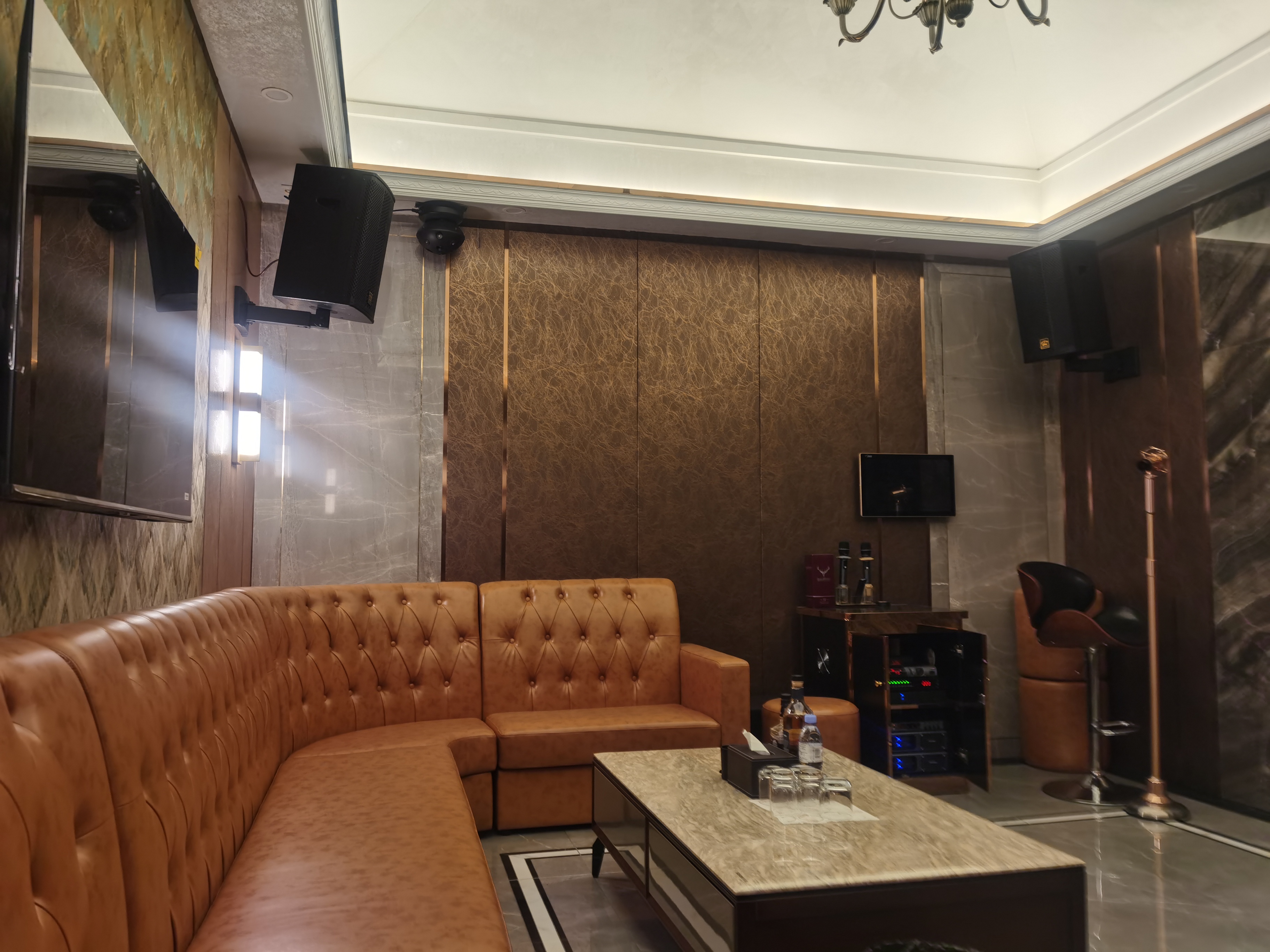 我們整個空間20平左右,為了達到聲場的均勻擴散,我們采用了4個12寸專業(yè)箱設(shè)計,配合專業(yè)的數(shù)字效果器,多種模式解決了很多人唱歌高音唱不上去,中頻不飽滿的情況,爆發(fā)力十足,整體空間感,聲場都很均勻