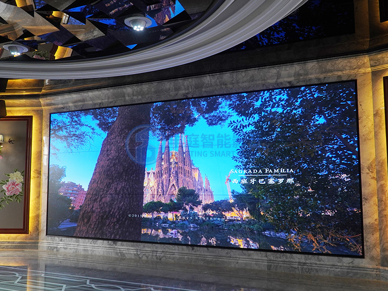 視頻部分,因房間太過于龐大,投影已經(jīng)滿足不了我們這個(gè)空間了,所以我們選用的是12塊55寸的LG 0.88mm的拼接屏來實(shí)現(xiàn)超大屏,使用液晶屏解決了環(huán)境光的影響和人在KTV娛樂室的動線問題。