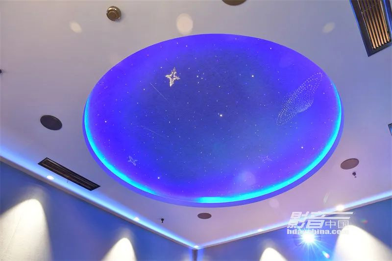 整體設(shè)計上選擇相對溫馨的藍色裝飾,搭配星空頂